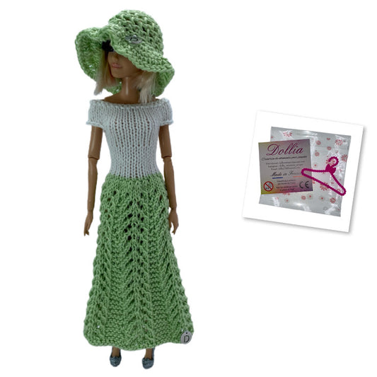 Longue robe d'automne avec son chapeau pour poupée sans fermeture fait main - Made in France