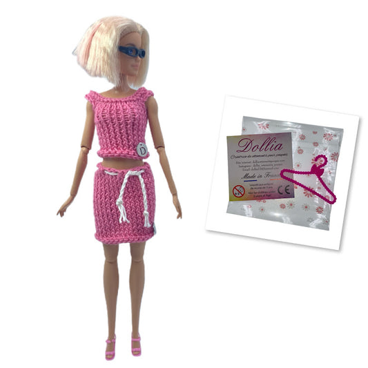 Ensemble Top et Jupe pour poupées sans fermeture fait main - Made in France