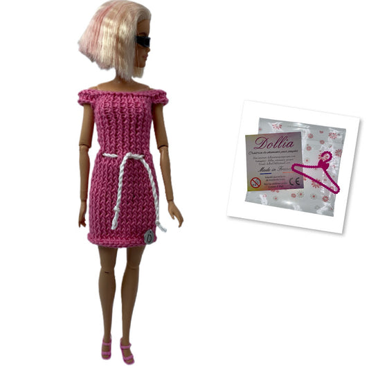 Courte robe avec ceinture pour poupées sans fermeture fait main - Made in France