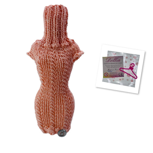 Courte robe sans paillètes avec col montant pour poupées sans fermeture fait main - Made in France