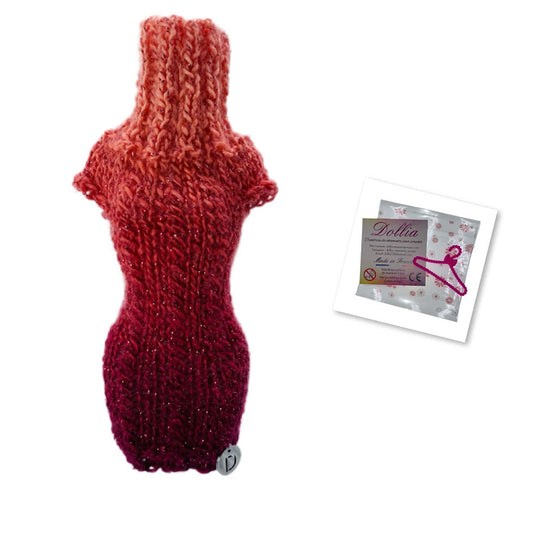 Courte robe avec col montant brillante pour poupées sans fermeture fait main - Made in France