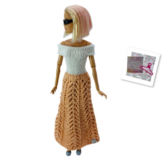 Longue robe d'automne pour poupée sans fermeture fait main - Made in France