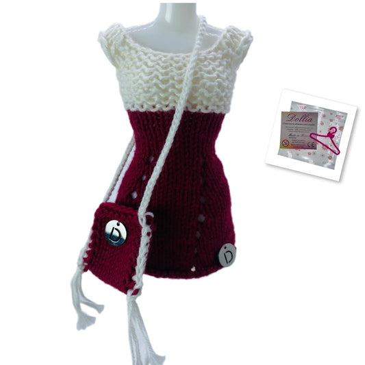Ensemble-Robe courte sans fermeture avec un sac pour poupées fait main - MADE IN FRANCE