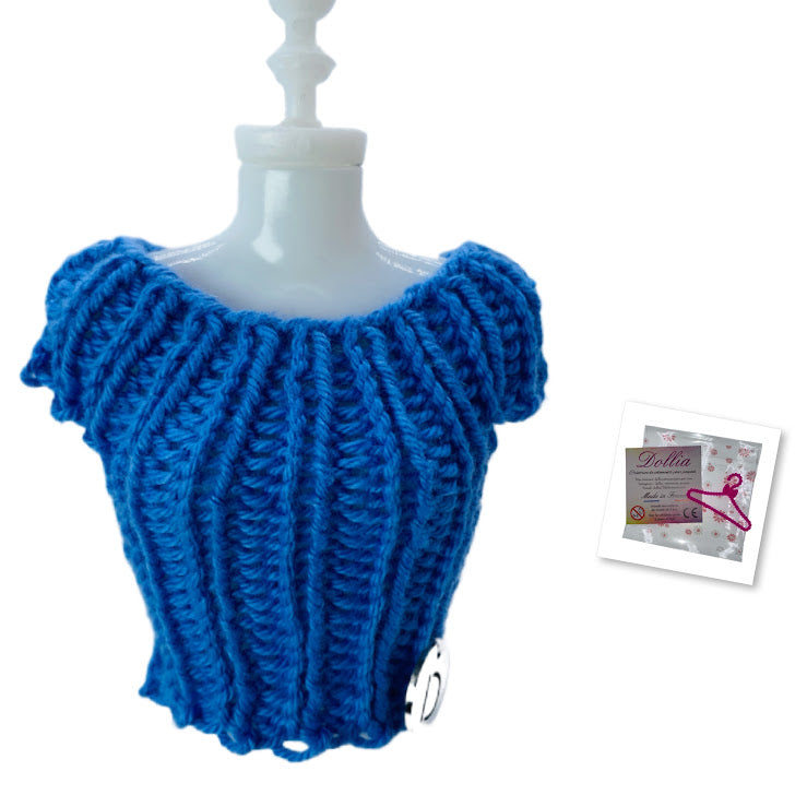 A T-shirt to dress your children's irresistible dolls. The T-shirt is hand knitted with cotton wool with its natural sheen, its extra long fibers elastic and extremely resistant. This cotton has good absorption, dries quickly and is resistant to washing at temperature. The wool is OEKO-TEX certified, a quality label comprising several technical standards, aimed at certifying health and ecological qualities, guaranteeing the absence of toxic products for the body and for the environment.